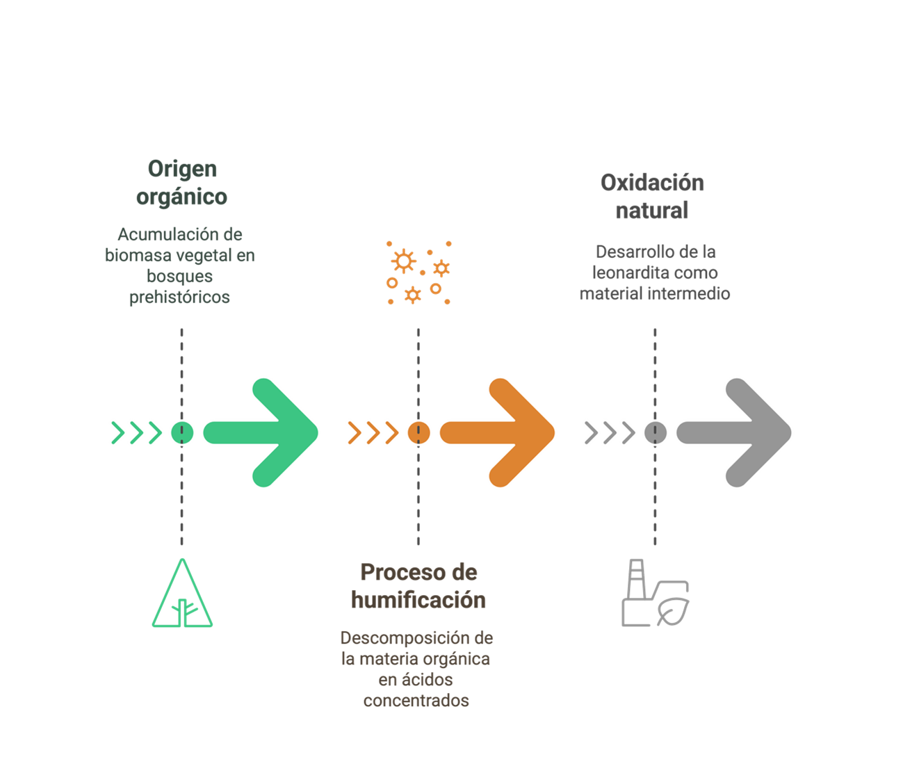 La Leonardita es una fuente altamente oxidada de ácidos húmicos y fúlvicos, que proviene de la descomposición natural de materia orgánica a lo largo de millones de años. Se encuentra en depósitos geológicos cercanos a las minas de lignito y se distingue por su alta actividad biológica y química.
